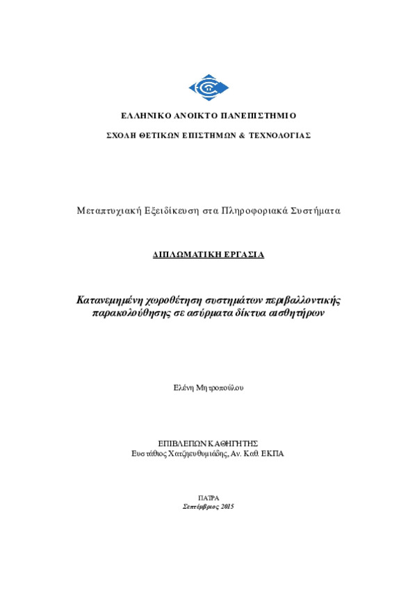 Κατανεμημένη χωροθέτηση συστημάτων περιβαλλοντικής παρακολούθησης σε ασύρματα δίκτυα αισθητήρων.