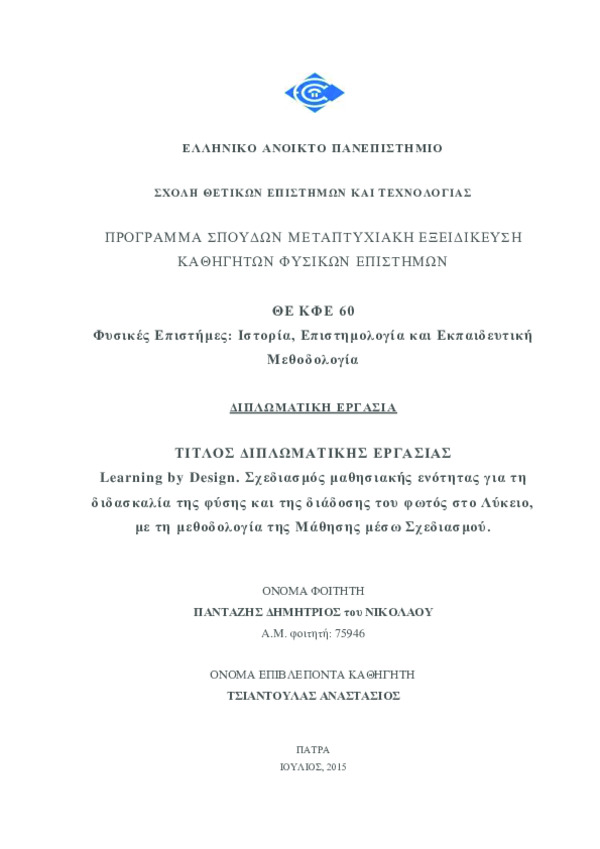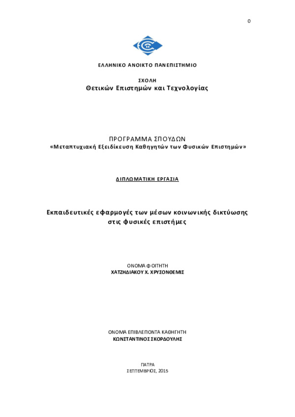 Σχολή Θετικών Επιστημών και Τεχνολογίας