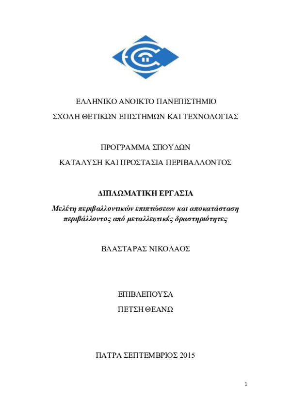 Μελέτη περιβαλλοντικών επιπτώσεων και αποκατάσταση περιβάλλοντος από μεταλλευτικές δραστηριότητες.