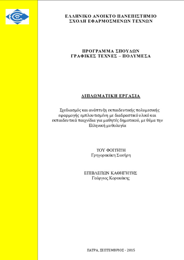 "Design and development of an educational multimedia application, containing interactive material and educational games in elementary education, based on Greek Mythology" [Αγγλική]