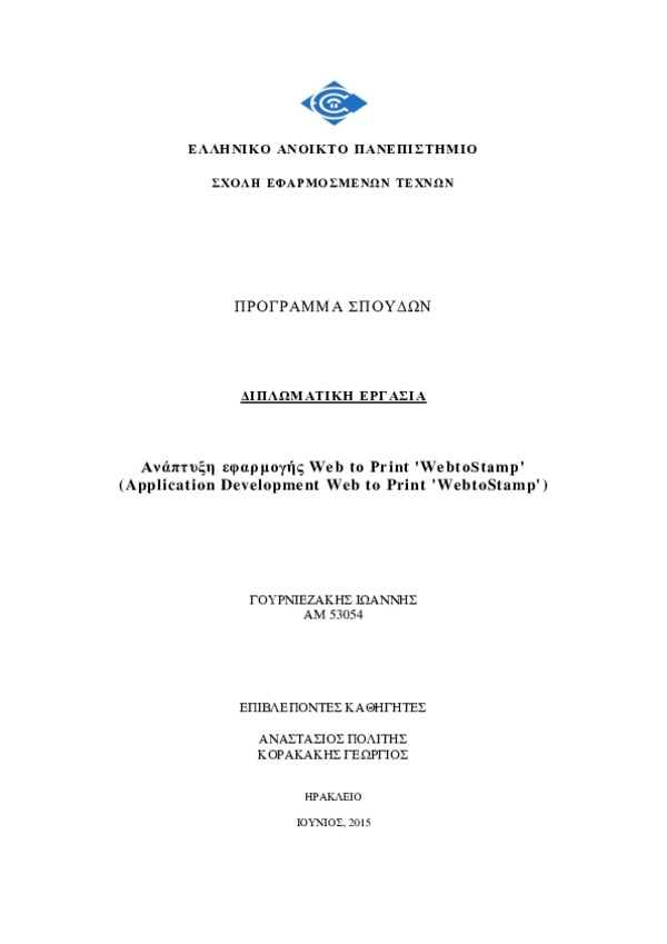 Application Development Web to Print 'WebtoStamp' [Αγγλική]