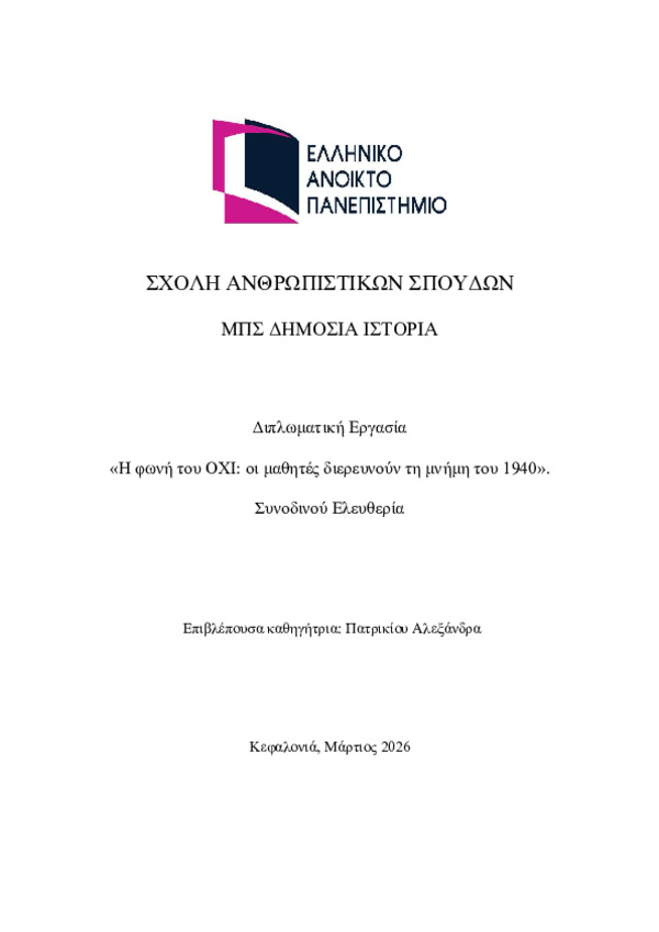 The voice of NO: students discover the memory of 1940 [Αγγλική]