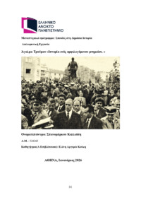 Ημερομηνία: 7-3-2026 Συγγραφέας: ΚΑΛΛΙΟΠΗ ΣΠΑΝΟΜΑΡΚΟΥ Σχολή: Σχολή Ανθρωπιστικών Επιστημών Τμήμα: Δημόσια Ιστορία (ΔΙΣ) Περίληψη (Abstract): Η παρούσα εργασία εστιάζει στον ανδριάντα του Χάρι Σ. Τρούμαν στην Αθήνα την άνοιξη του 1963, προσεγγίζοντάς τον όχι απλώς ως μνημείο στον δημόσιο χώρο, αλλά ως πυκνό πολιτικό και ιδεολογικό σύμβολο. Το άγαλμα συμπυκνώνει κρίσιμες όψεις της πορείας της Ελλάδας στον Ψυχρό Πόλεμο, της σχέσης της με τις Ηνωμένες Πολιτείες και της διαμόρφωσης της δημόσιας μνήμης στη μετεμφυλιακή περίοδο. Η ανέγερσή το...