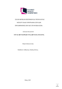 Περίληψη (Abstract): Η παρούσα εργασία εξετάζει την εξέλιξη, τις βασικές αρχές, τις εφαρμογές και τις προκλήσεις της κβαντικής υπολογιστικής, καθώς και τις μελλοντικές προοπτικές αυτής της ταχέως αναπτυσσόμενης τεχνολογίας. Ξεκινώντας με μια ιστορική αναδρομή , παρουσιάζονται τα όρια της κλασικής μηχανικής που οδήγησαν στην ανάπτυξη της κβαντικής θεωρίας,καθώς και τα φαινόμενα που έπαιξαν καθοριστικό ρόλο στη διαμόρφω...