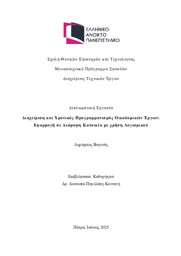 Management and Scheduling of Building Projects: Application to a Two-Story Residence using Software [Αγγλική]