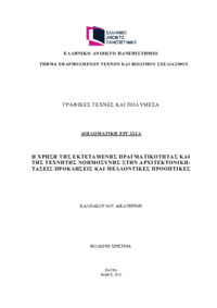 Περίληψη (Abstract): Η παρούσα διπλωματική εργασία αποτελεί μια συστηματική ανασκόπηση σχετικά με τη χρήση της εκτεταμένης πραγματικότητας και της τεχνητής νοημοσύνης στον τομέα της αρχιτεκτονικής. Στόχος της μελέτης αυτής είναι η διερεύνηση των κυριότερων τάσεων, εφαρμογών και προκλήσεων και μελλοντικών προοπτικών αυτών των τεχνολογιών στον τομέα της αρχιτεκτονικής. Η μεθοδολογία που ακολουθήθηκε είναι η PRISMA. Αυτή...