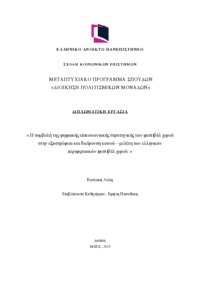 Περίληψη (Abstract): Η επικοινωνία των πολιτιστικών οργανισμών, συμπεριλαμβανομένων των Σύγχρονων Πολιτιστικών Φεστιβάλ, έχει μετασχηματιστεί σημαντικά με την υιοθέτηση των ψηφιακών μέσων, ιδίως των μέσων κοινωνικής δικτύωσης, ως κυρίαρχων εργαλείων διάδρασης με το κοινό. Η παρούσα μελέτη αναδεικνύει την αναγκαιότητα διαμόρφωσης σαφούς και στοχευμένης επικοινωνιακής πολιτικής, με σκοπό την αποτελεσματική προβολή, προώ...