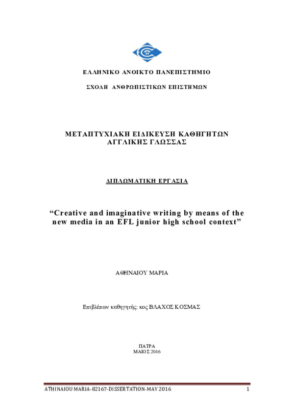 Creative and imaginative writing by means of the new media in an EFL junior high school context [Αγγλική]
