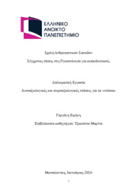 Περίληψη (Abstract): Στην παρούσα εργασία διερευνώνται οι απόψεις, οι στάσεις και οι διδακτικές πρακτικές εκπαιδευτικών προσχολικής ηλικίας, καθώς και οι προκλήσεις που αντιμετωπίζουν κατά τη διδασκαλία σε τάξεις με δίγλωσσους μαθητές. Κεντρικό ζήτημα αποτελεί η σημασία της πρώτης γλώσσας και της πολυγλωσσίας για τη γλωσσική ανάπτυξη, την κοινωνική ένταξη και τη μάθηση της ελληνικής ως δεύτερης γλώσσας. Η θετική στάση...