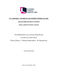 Τίτλος σε άλλη γλώσσα: The representation of the female sex worker in the mid-20th century: Petros Pikros. Galateia Kazantzaki. M. Karagatsis [Αγγλική] Ημερομηνία: 08-03-2026 Συγγραφέας: ΙΩΑΝΝΑ ΚΩΣΤΟΥΛΑ Σχολή: Σχολή Ανθρωπιστικών Επιστημών Τμήμα: Δημιουργική Γραφή (ΔΗΓ) Περίληψη (Abstract): Η παρούσα εργασία επιχειρεί να μελετήσει την αναπαράσταση της γυναίκας σεξεργάτριαςστην ελληνική λογοτεχνική σκηνή στα μέσα του 20ού αιώνα και ειδικότερα στα έργα τριώνΕλλήνων συγγραφέων. Συγκεκριμένα θα εξετάσουμε κείμενα του Πέτρου Πικρού, τηςΓαλάτειας Καζαντζάκη και του Μ. Καραγάτση. Τα επιλεγμένα έργα είναι τρία διηγήματα απότην συλλογή Χαμένα Κορμιά του Πικρού, το ποίημα «Αμαρτωλό» και το διή...