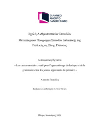 Abstract: Ce mémoire explore l’utilisation de la carte mentale comme outil pédagogique dans l’enseignement du français langue étrangère (FLE) à des apprenants de niveau A1, dans un contexte de cours en école primaire en Grèce. L’accent est mis sur la manière dont cet outil visuel peut favoriser la structuration des idées, améliorer la compréhension lexicale, stimuler la créativité, et soutenir la production...