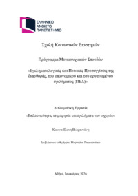 Abstract: Η παρούσα διπλωματική εργασία διερευνά τις εμπειρίες, τις αντιλήψεις και τις ανάγκες γονέων παιδιών προσχολικής ηλικίας αναφορικά με την ψυχοεκπαίδευση, καθώς και τη συμβολή της στην οικογενειακή ευημερία και την προαγωγή της δημόσιας υγείας. Η προσχολική ηλικία αποτελεί κρίσιμη αναπτυξιακή περίοδο, κατά την οποία οι γονείς καλούνται να διαχειριστούν αυξημένες απαιτήσεις και προκλήσεις, γεγονός πο...